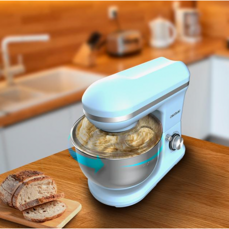 Amasadora para uso doméstico que ofrece todas las funciones necesarias para amasar, batir, mezclar, montar y emulsionar.