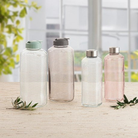 La botella Velvet de 1,8L de Quid es una opción elegante, práctica y sostenible para conservar y servir tus bebidas favoritas. Fabricada en vidrio sodo y con tapa de polipropileno (PP), combina funcionalidad y estilo gracias a su diseño alto, color gris y acabado con relieve que mejora el agarre y aporta un toque decorativo.