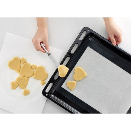 El COOKIE PUZZLE CORAZÓN LEKUE es una forma rápida, sencilla y original de regalar corazones. Este único molde cuenta con 12 figuras de corazón en él, lo que te permite ponerlas sobre la masa de una sola vez y tenerlas listas para meter al horno.