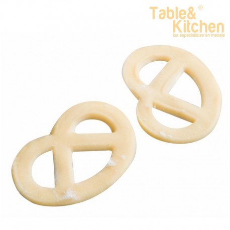 El cortapastas Brezel tiene un diseño que facilita la creación de formas de pretzel (lazo) en la masa. Esto garantiza que todas las pastas tengan un tamaño uniforme, lo que mejora la presentación en la mesa.