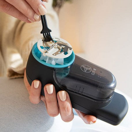 El Quitapelusas CUT-X 4500 TEXTILE es un dispositivo con batería recargable que ofrece hasta 45 minutos de autonomía. Cuenta con un sistema de seguridad, alcanza 8800 revoluciones por minuto y tiene un cabezal regulable, así como un cepillo de limpieza. Además, incluye un depósito de hilos.