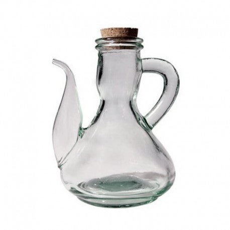 Aceitera de vidrio con tapón de corcho de medio litro.