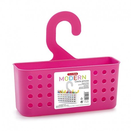 Es una práctica cesta para tener a mano las pinzas para tender la ropa.