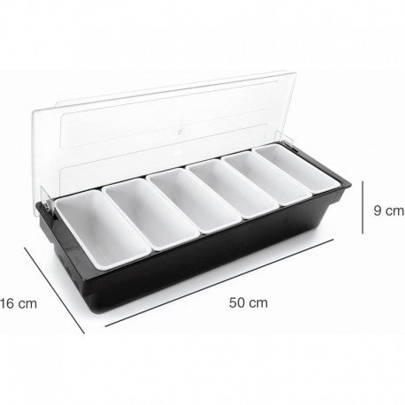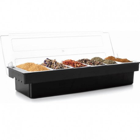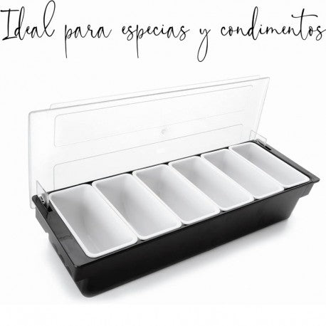 CONTENEDOR DE CONDIMENTOS C/TAPA 6 CAVIDADES