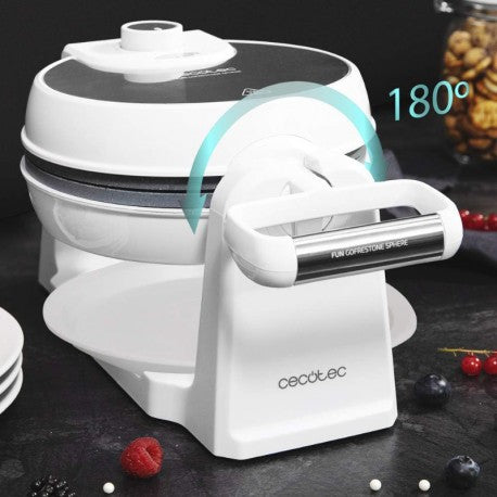 Gofrera Fun Gofrestone Sphere de 1000W de potencia y revestimiento antiadherente de piedra ecológico Rockstone, con diseño circular y color blanco.