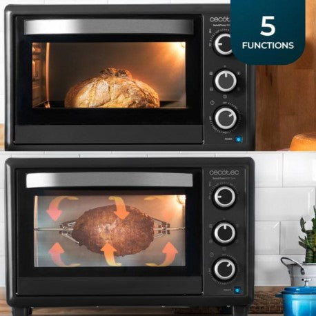 Asa a 360º: incluye rustidor giratorio que permite asar pollos con calor en 360º gracias su capacidad de giro.