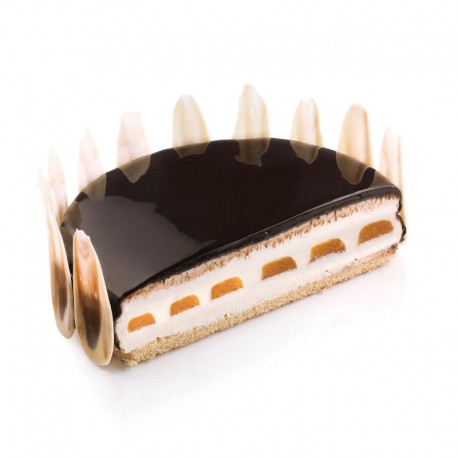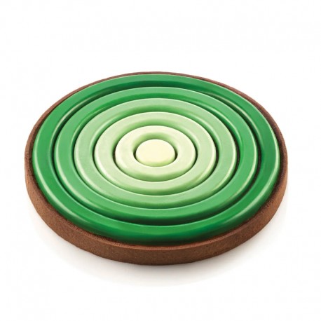 Con el molde INSERT DECOR ROUND es posible crear decoraciones o insertos de 12 tamaños diferentes, 6 para cada lado del molde, para ser utilizados en la superficie o en el interior de las preparaciones. ideal para helados, azúcar, chocolate y productos horneados.