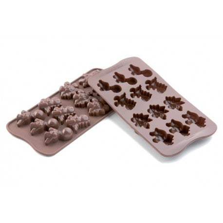 Molde fabricado en silicona Platinum 100% para hacer bombones con forma de dinosaurios (4 formas diferentes).