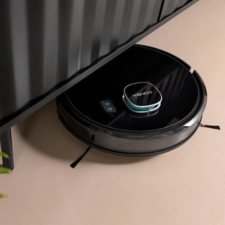 Robot aspirador Conga Eternal Max X-Treme con mapeo láser y función de friegasuelos. Este robot ofrece una potencia de succión de 3000 Pa y una autonomía de 110 minutos. Dispone de 3 niveles de potencia y fregado, así como un cepillo multifunción. Además, cuenta con 10 programas, control mediante APP y es compatible con el asistente virtual Alexa. Incluye 2 mopas.