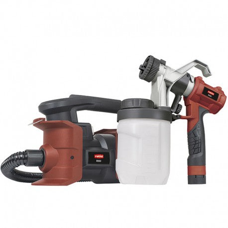 Sistema de pulverización para pintar las paredes. Puedes adaptar el chorro de pintura mediante 3 modos de pintado: circular, ovalado pequeño y ovalado grande, garantizándote una capa de pintura perfecta y uniforme. Procesa todo tipo de materiales sin diluir, en el caso de pinturas muy espesas o gelatinosas, está recomendado diluirlas en un 10%. Dispone de un motor con una potencia de 800 W aportando un flujo de pulverización de 1100 ml/min. El depósito tiene capacidad para 1200 ml y 900 ml la manguera tiene una longitud de 1,8 metros de longitud.