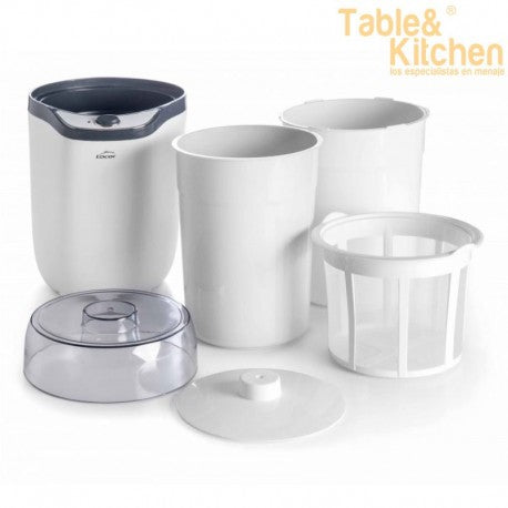 La Yogurtera White de Lacor es ideal para la elaboración de yogures caseros sanos y naturales. Incluye un filtro que permite la preparación de yogur griego.